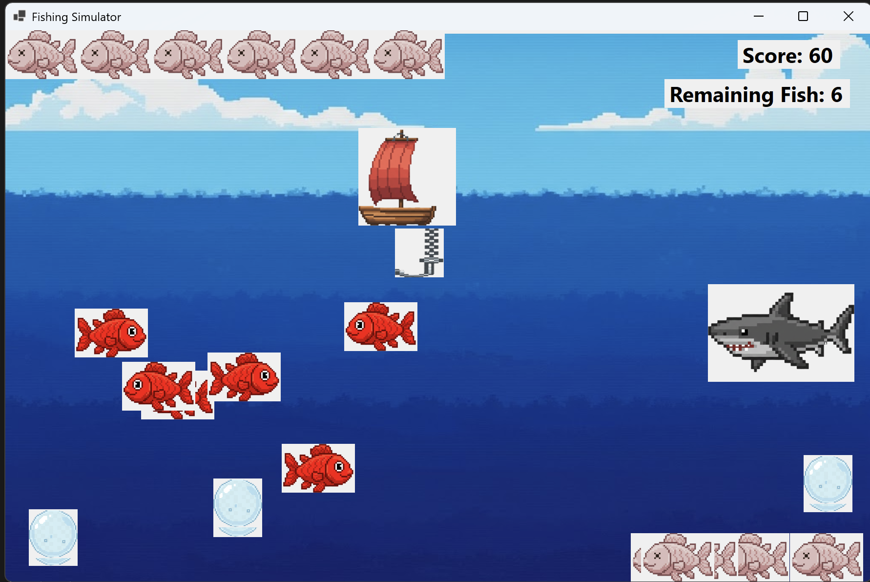 We learned how to implement random movement of fish and user interaction for a fishing simulation using 'for' loops.